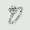 A sparkle to remember. Radiating timeless elegance, the Shimmer Lab Grown Diamond Solitaire Ring showcases a brilliant 1 carat round cut center stone. Delicate side diamonds grace the band, enhancing its luminous beauty. A symbol of enduring love, this exquisite ring is crafted to make your special someone shine forever