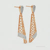 The Opulent Diamond Drop Earrings feature a unique openwork design that gives them an elegant look. The rose gold structure has a detailed pattern that adds texture without making the earrings feel heavy. At the top and along the edge, small diamonds are set closely together, adding a bright, even sparkle that stands out gently when you move.