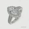 Embrace royalty with a unique artistic design by Emori through the Majestic Marquise Engagement Ring. This beautiful ring features a remarkable marquise cut lab grown diamond at its center, surrounded by neatly arranged small round diamonds that enhance its sparkle. The centerpiece is a 1.03 CT marquise cut lab grown diamond, a shape admired for its elongated form that creates the illusion of longer and slender fingers. The center stone is framed by a halo of round brilliant diamonds, adding depth and radiance to the design.