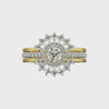 Capture the essence of nature on your enchanting fingers with the Solitaire Sunflower Diamond Ring by Emori. The ring comes with a detachable feature and styled as two different rings as per the occasion. The middle ring is embellished with a round cut lab-grown diamond surrounded by a halo of smaller diamonds. Also the band captures a perfect glory with a starry array of diamonds indulging the whole design with a heart-felt reactions. The second ring features floral pattern engraved with diamonds, followed by a double yellow gold band. When styled together the rings create a beautiful illustration of sunflower with a hint of traditional pattern. The ring is perfect to flaunt a bold statement look or as a precious gift to someone special.