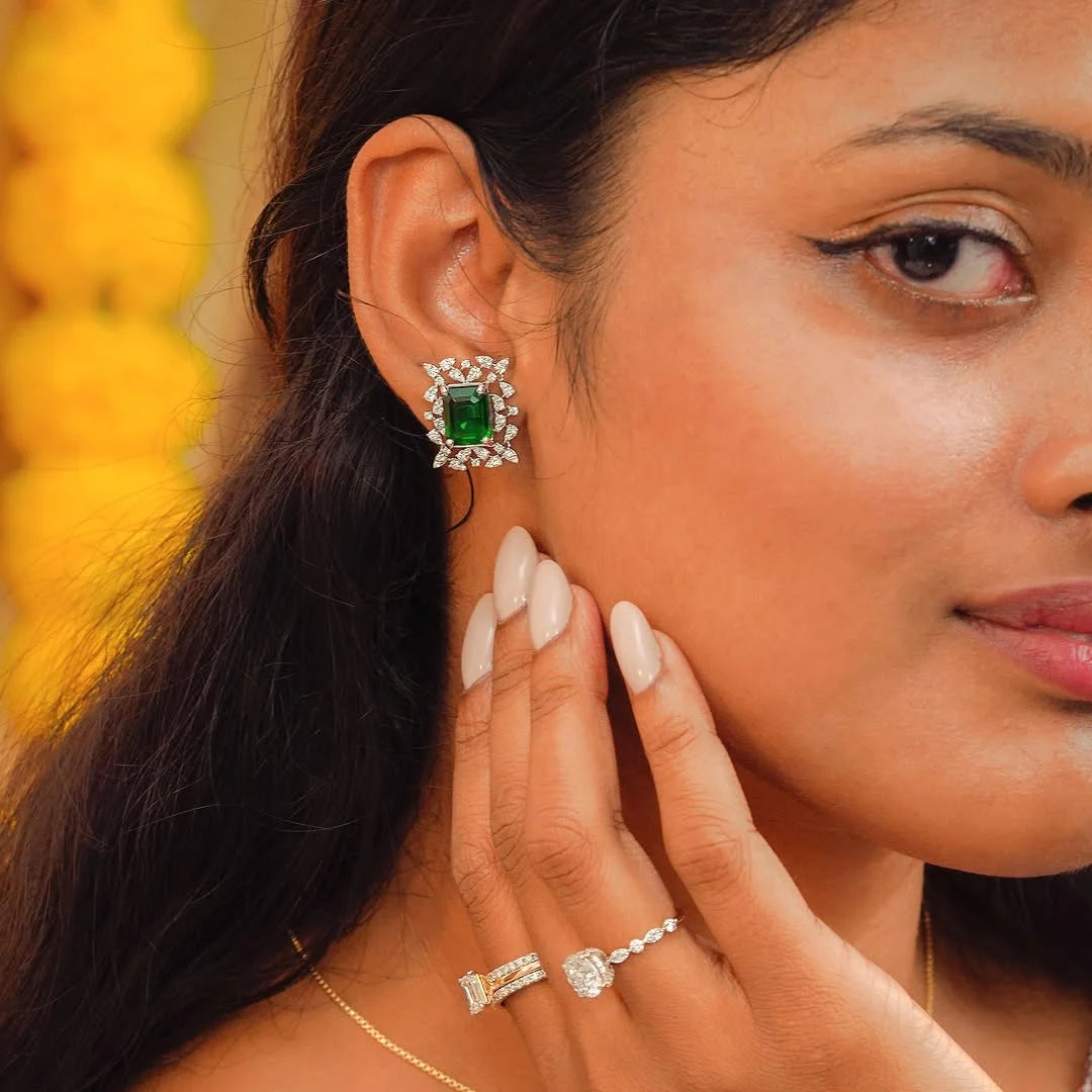 - Gemstone studs : These unique gemstone studs add color and character to your look, making them ideal to pair with vibrant and colorful outfits. The gemstone studs are perfect for adding a pop of color, while sleek design speaks of luxury.