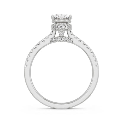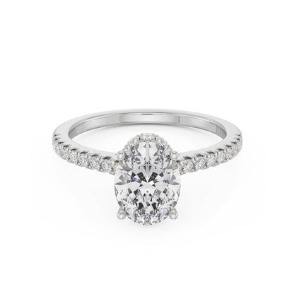 Presenting a Timeless Oval Diamond Ring by Emori a cherished art for creating a graceful avatar. This Phenomenal ring is inspired by vintage style in oval shaped lab-grown diamond, flanking the center spotlight on the unique and classy celebrated ring. It's set with a white gold band crafted with unmatched brilliance of round diamonds on each side around the finger. The ring is offered in two distinctive options of 14 & 18 karat of white gold which presents a sense of personalization that fits according to the wearer's precise taste.