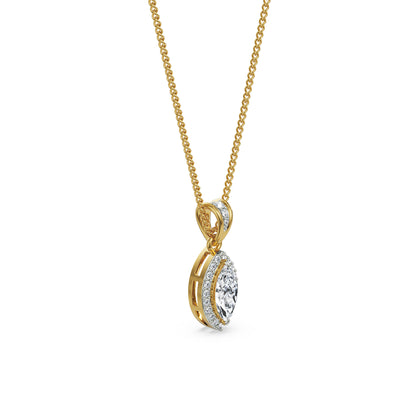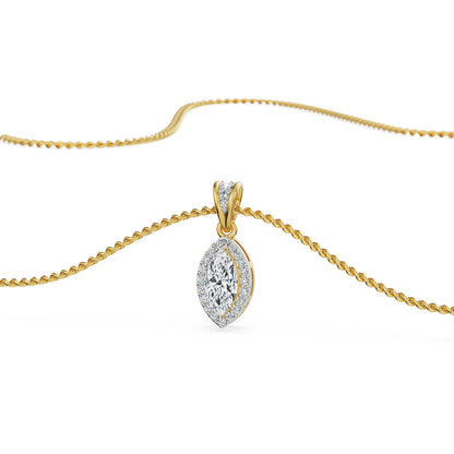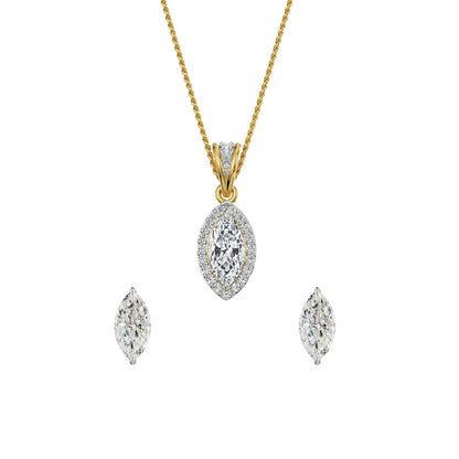 Ready to turn heads with some serious sparkle? Emori’s 0.5 CT Marquise Lab Grown Diamond Matching Set is here to add sparkle to your life. This statement marquise pendant set features a lab-grown marquise diamond that is surrounded by a radiant halo of small round diamonds in radiant yellow gold. The beautiful pendant set adds a regal touch to your newlywed's overall look.