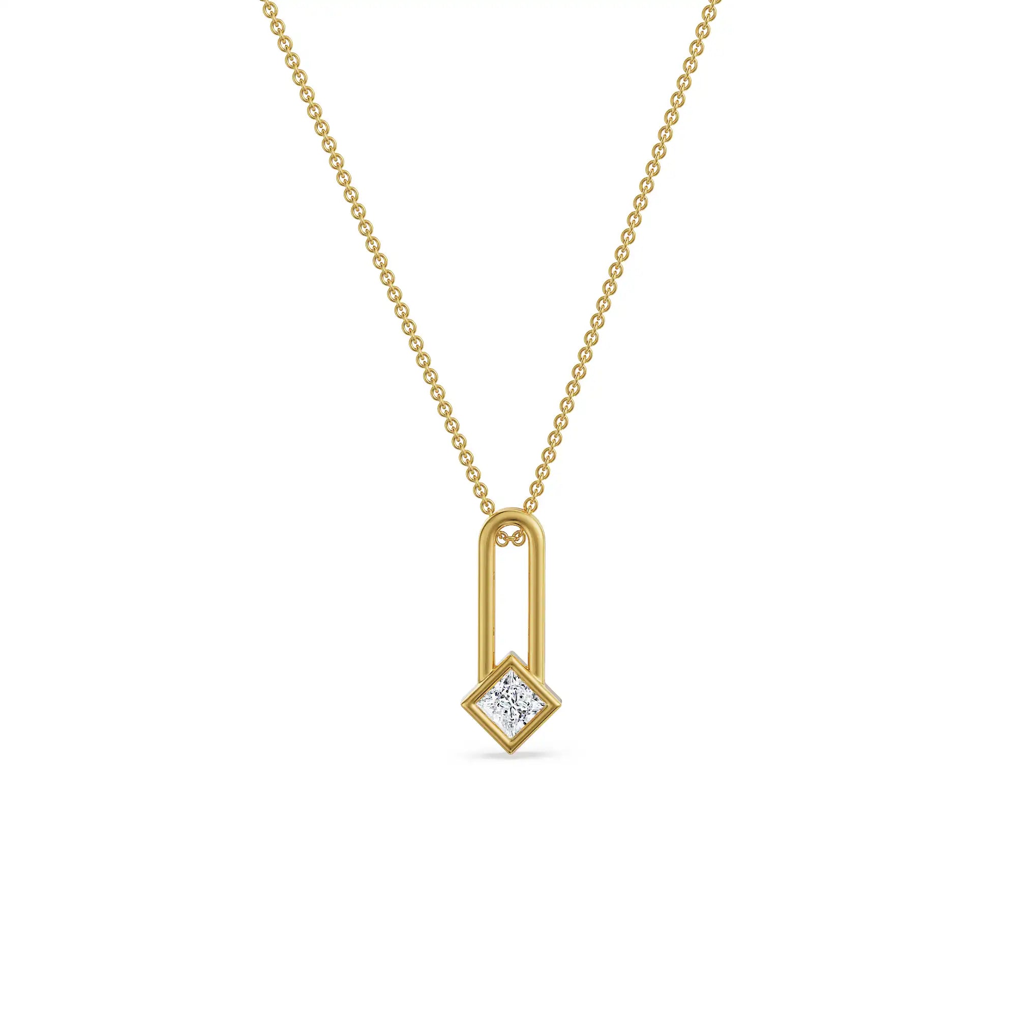 Featuring a sleek safety pin design, this Anchor Princess Lab Grown Diamond Pendant is elevated by a stunning 1 Ct Princess-cut diamond, adding just the right amount of sparkle. Suspended from a delicate chain, it’s the perfect blend of bold and refined.
