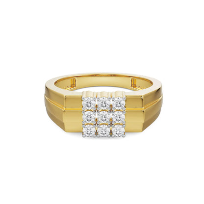 Presenting a traditional design with a contemporary hint, the Arthur Diamond Ring for Men by Emori. This ring shares a bold yet timeless pattern with a sparkling cluster of nine round lab-grown diamonds. Its classic design settled at a wide yellow gold band symbolizes strength and unity while making it a thoughtful ring to be cherished as an anniversary gift or milestone celebration. You can pair it with a tailored tuxedo or worn as an everyday luxury that ensures to present a signature style statement.