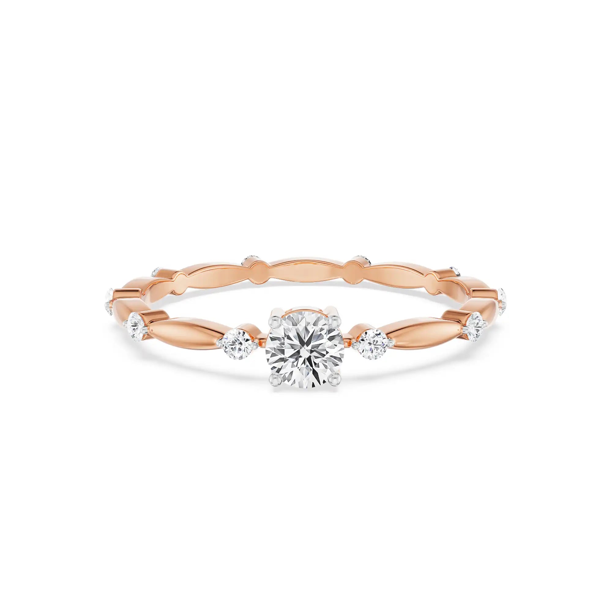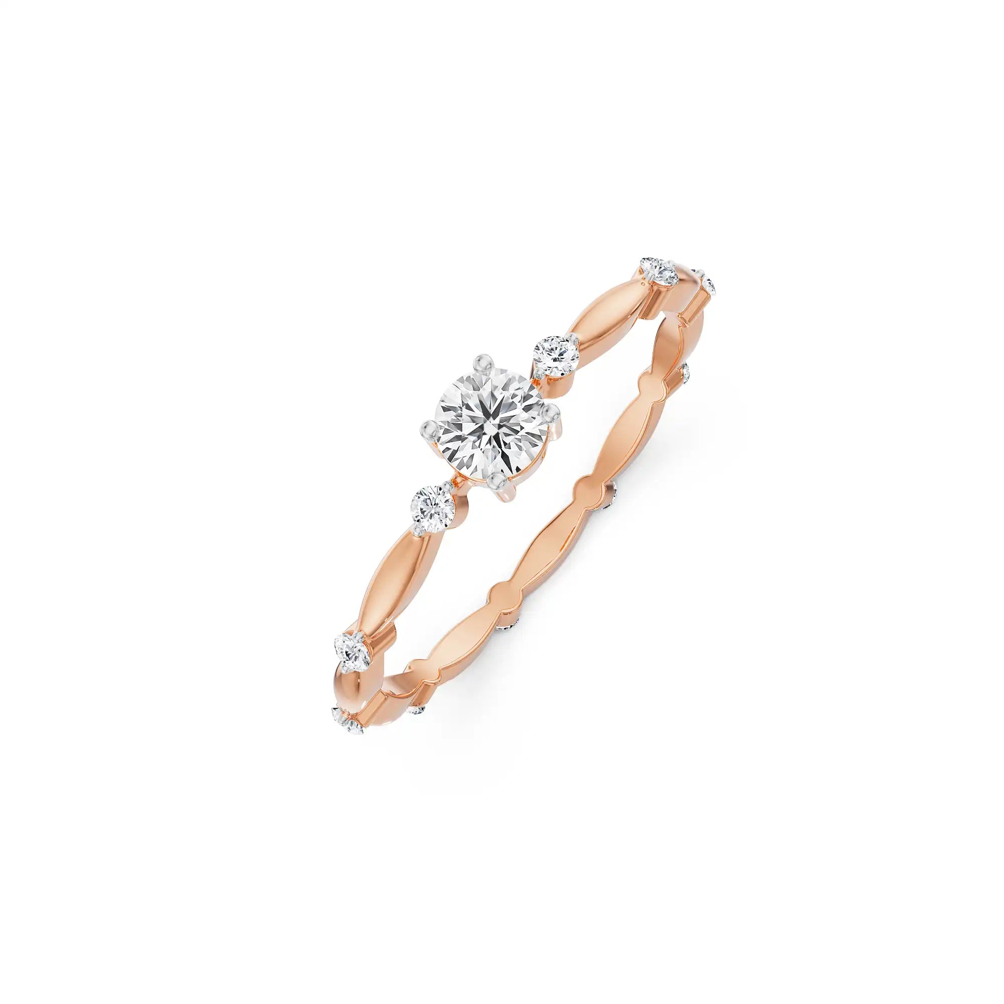 Want a perfect promise ring with a hint of romance? Presenting the Clara Dainty Diamond Ring by Emori. This ring features a 0.15 CT round cut lab-grown diamond in the center expertly placed in a 4-prong setting, embracing a classic charm with minimal shine. This diamond is settled on a rose gold band delicately accented by diamonds on a distance across your finger. So what are you waiting for? grab the ring and make your anniversaries and “just because” moment extra special.