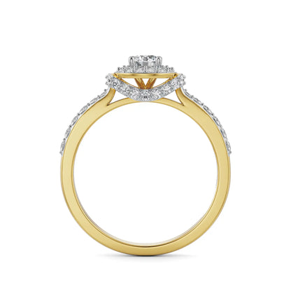 Embellish your fingers in unmatched grace and elegance with the Hanna Halo Solitaire Engagement Ring by Emori. This detailed article showcases a 0.2 CT round cut lab-grown diamond in the middle surrounded by a halo diamonds. This sparkling halo is detailed with a hidden arc engraved diamonds carrying the centerpiece beautifully while adding a striking eye-catchy detail. The classic ring with subtle sparkle is ideal for adding in an everyday look to embrace confidence in the wearer.