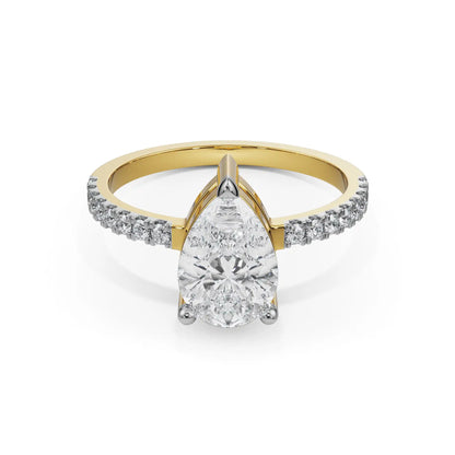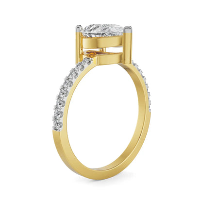 Say cheers with a cocktail ring crafted to make a perfect statement look at any party, the Love’s Embrace Ring by Emori. The beautiful ring features a 1.2 CT pear cut lab-grown diamond in the center with a classic 3-prong setting. The warm yellow gold band complements the sparkling center stone with small round diamond engravings, making a breathtaking appearance of the ring. Whether it is a mesmerizing cocktail gown or a short glamorous dress, this ring promise to indulge you in an unmatched shimmering beauty.