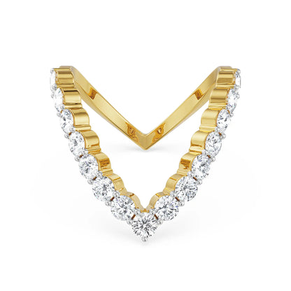 Have you ever seen a blend of minimalist beauty and uniqueness, take a look at the Minimalist V Diamond Band crafted by Emori. This exquisite ring features a V-shape yellow gold band adorned with sparkling 1.23 CT round cut lab-grown diamonds, crafting a subtle yet striking look. Perfect for people who appreciate contemporary elegance with a hint of unmatched brilliance. Shop the ring now and engage your look in a beautiful stack while complementing other rings or wear it alone for a minimalist glance.