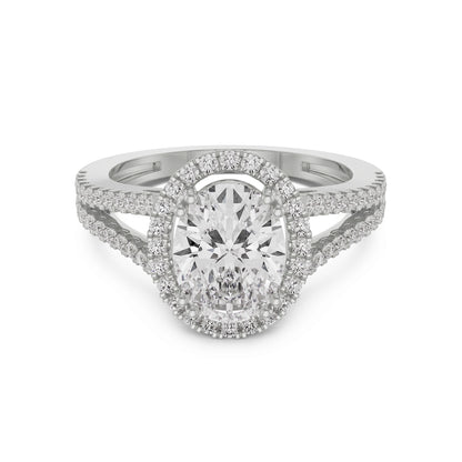 Embrace the timeless allure of the Oval Brilliant Diamond Ring, a masterpiece inspired by the elegance of classic designs. The star of the show is the brilliant 1.35 CT oval-cut diamond, a symbol of purity and everlasting love. Surrounding the center stone is a delicate halo, enhancing its radiance and adding a touch of vintage charm. The split shank is meticulously studded with diamonds, creating a mesmerizing play of light and shadow. The oval shape brings a hint of whimsy, making it a perfect complement to bohemian styles. Pair it with flowing dresses and floral patterns for a carefree yet glamorous look.