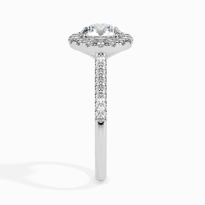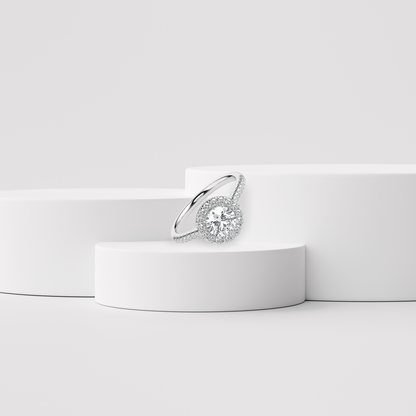 Embellish yourself in royalty and elegance with the Queen Solitaire Diamond Ring, a classic art by Emori. The ring is detailed with a brilliant 0.26 CT round cut lab-grown diamond encircled by a halo of smaller diamonds, adding an extra layer of brilliance to the ring. The mesmerizing band is crafted with a hallmark white gold and enriched by round diamonds, engaging the whole article with a sparkling glance. The ring is designed for both comfort and durability that ensure you shine with pride for a lifetime.