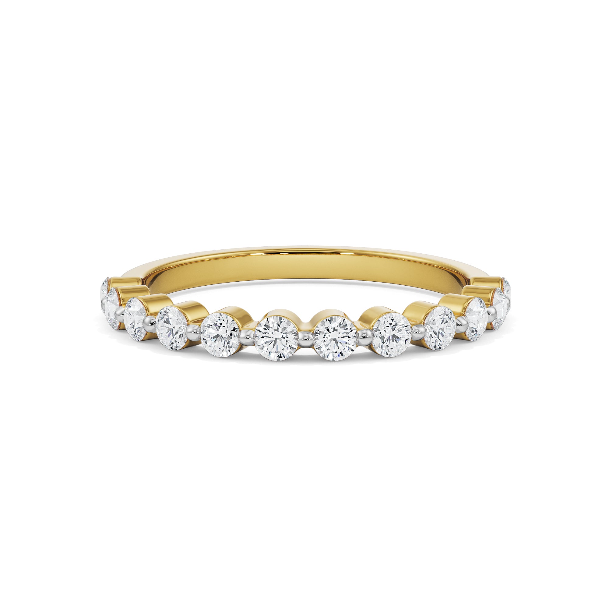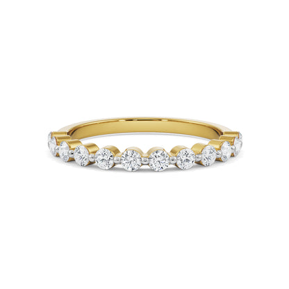 Give a striking grace with a minimal detailing to your fingers with the Round Half Eternity Band crafted by the expert craftsmanship of Emori. The artcile captures a heart-felting brilliance with the sparkling array of round-cut lab-grown diamonds settled on a warm yellow gold band for enhancing a touch of refinement in the band. You can style the band while stacking it up with your exciting jewellery designs or wear it alone for a luminous everyday glance.