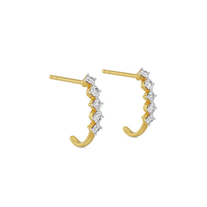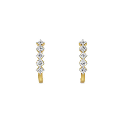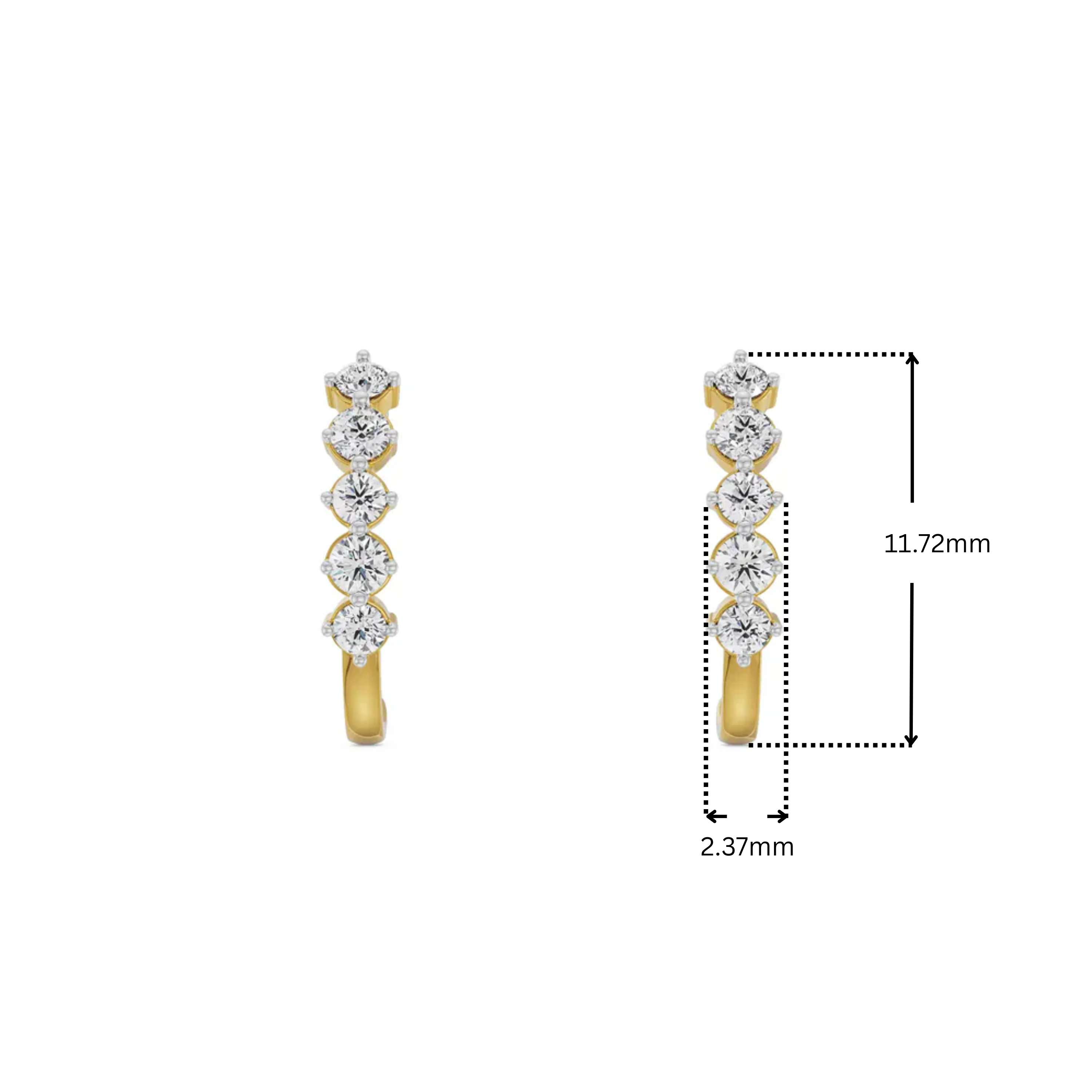 Our Round Diamond Quintet Earrings are a perfect statement piece of jewelry that goes with any day or night outfit. Each earring features a quintet of round-cut lab-grown diamonds meticulously set in a chic design that exudes luxury and class. The brilliance of the diamonds is accentuated by their expertly crafted yellow gold setting and clusters.