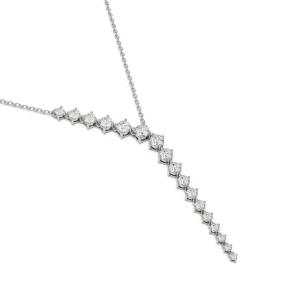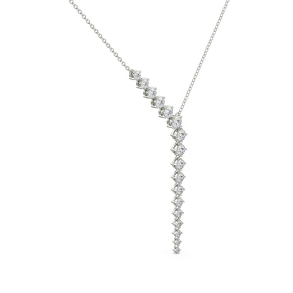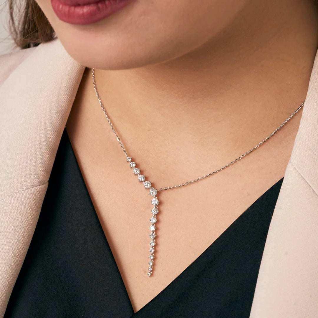 Each diamond is carefully set in a four-prong setting, allowing maximum shine while keeping the overall look light and delicate. The design begins with smaller stones at the top and gradually increases in size toward the end, giving the necklace a natural movement and perfect balance.