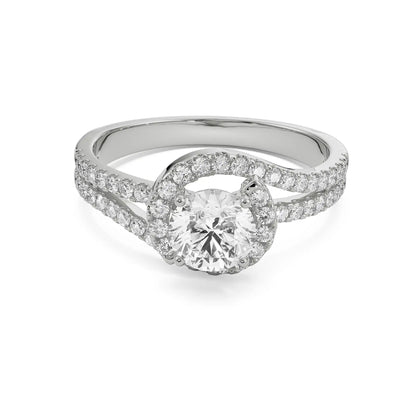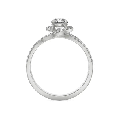 Celebrate the day of love and commitment with Emori's Twisted Engagement Ring. Meticulously designed with a round 0.5 CT lab-grown diamond encircled by a twisted patterned Halo of sparkling diamonds illuminating the effect of a beautiful night with loads of stars. The irresistible article is crafted with certified hallmark white gold to present a refined finish to the ring. The ring is perfect to bring a smile to the beautiful face of your loving soulmate.