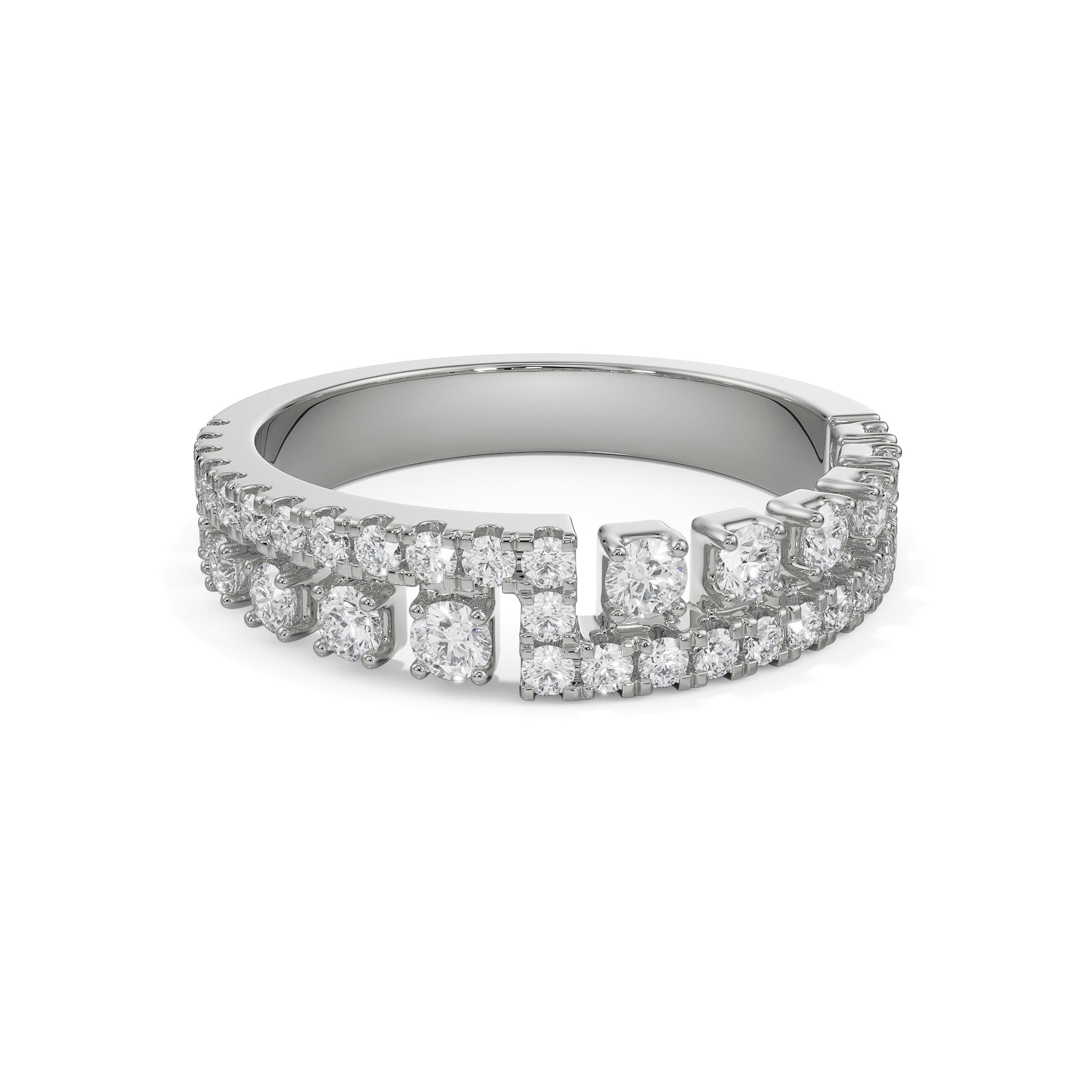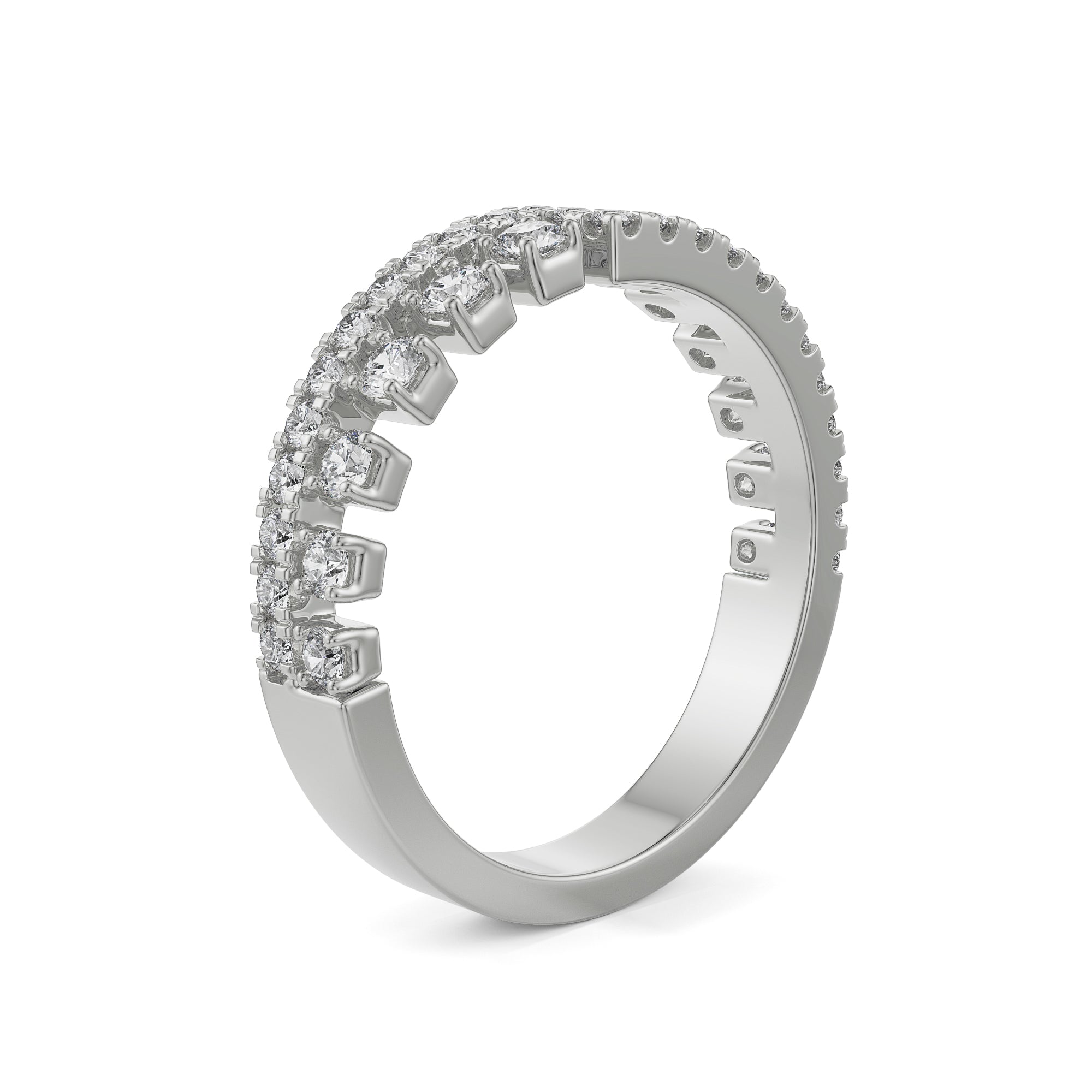 Travel back to the golden era of vintage romance with the Vintage Diamond Band from Emori's collection. The beautiful band features a continuous two-array of 0.6 CT round cut lab-grown diamonds placed adjacent to each other. The sparkling article is crafted on luminous white gold to complement the shine of diamonds. Whether you want to add a sparkling touch of confidence to your professional avatar or enhance everyday elegance, this band is the must-have piece in every women's collection.