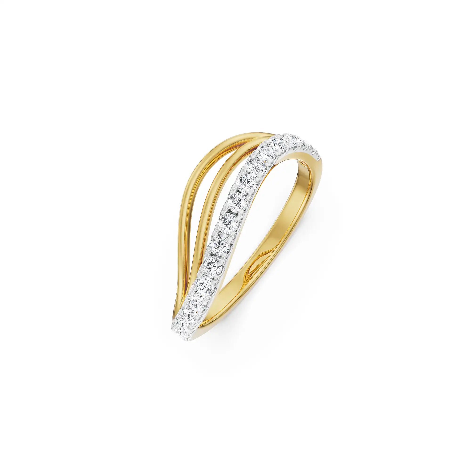 Cherish your fingers with a wavy beauty, presenting the Wavy Kristal Diamond Band by Emori. This article features a three-layer wavy band made with hallmark yellow gold and refined with 0.28 CT round cut lab-grown diamonds on one layer, creating a harmonious flow that flaunts the light and will surely capture the attention as well. This affordable beauty ensures a comfortable fit, making it a joy to wear throughout the day while enhancing your look with luxury.